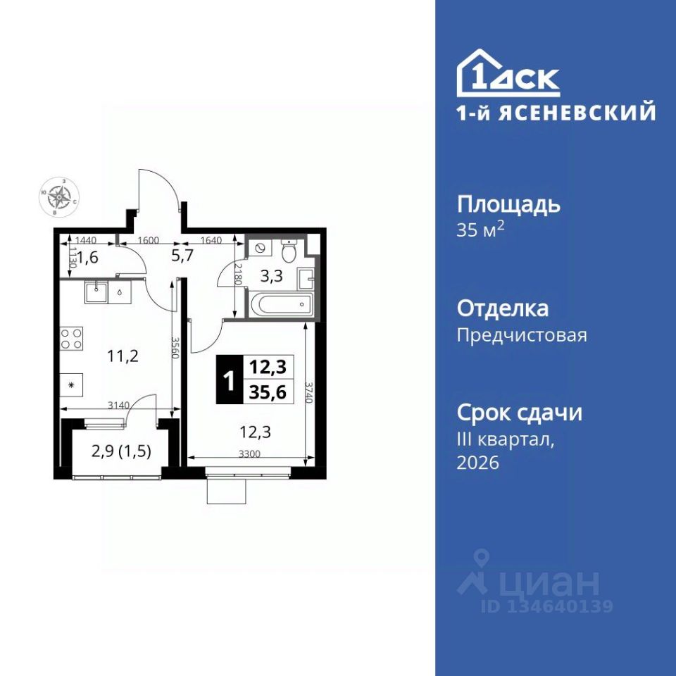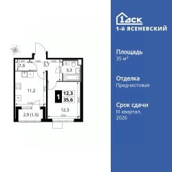 Продаётся 1-к квартира номер 149 общей площадью 35.6 кв.м. на 16-м этаже 16 этажного здания. Отделка Whitebox.