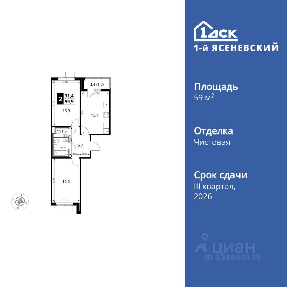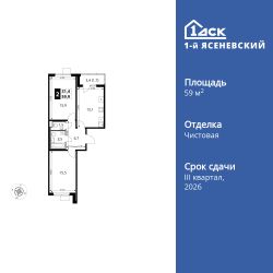 Продаётся 2-к квартира номер 417 общей площадью 59.9 кв.м. на 9-м этаже 9 этажного здания. Чистовая отделка. Цена с учётом скидки.