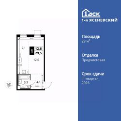 Продаётся квартира-студия номер 546 общей площадью 29.5 кв.м. на 13-м этаже 18 этажного здания. Отделка Whitebox.
