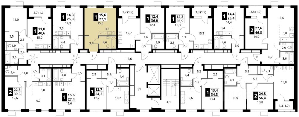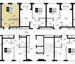 Продаётся 1-к квартира номер 135 общей площадью 27.1 кв.м. на 4-м этаже 16 этажного дома. Отделка Whitebox.