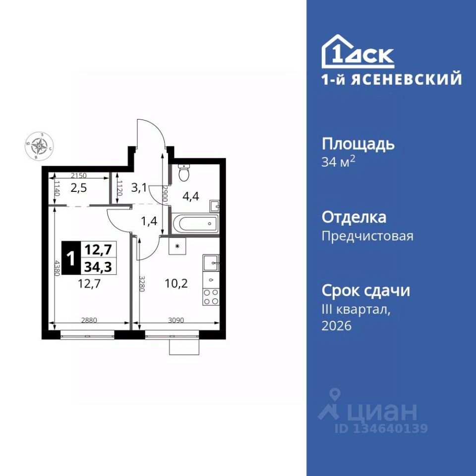 Продаётся 1-к квартира номер 142 общей площадью 34.3 кв.м. на 5-м этаже 16 этажного здания. Отделка Whitebox.