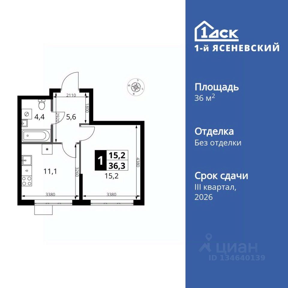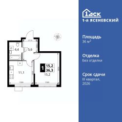 Продаётся 1-к квартира номер 686 общей площадью 36.3 кв.м. на 13-м этаже 18 этажного здания. Без отделки.