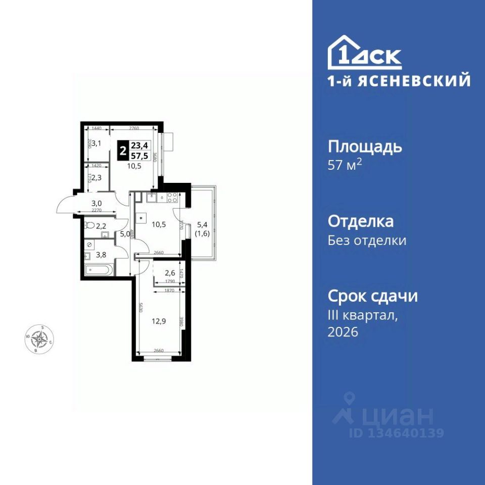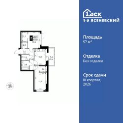 Продаётся 2-к квартира номер 649 общей площадью 57.5 кв.м. на 9-м этаже 18 этажного здания. Без отделки.
