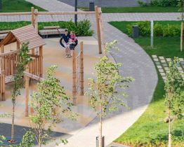 В проекте будет семнадцать домов высотой от 14 до 33 этажей, благоустроенная территория с дворами-парками, подземные паркинги, собственные детский сад и школа. Для тихого и активного отдыха появится MultiHub "Яблони" с красивым садом, большой детской игровой зоной и спортивным бульваром.