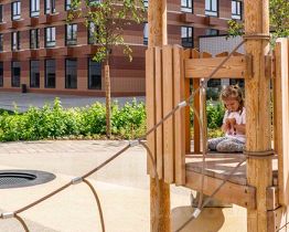В проекте будет семнадцать домов высотой от 14 до 33 этажей, благоустроенная территория с дворами-парками, подземные паркинги, собственные детский сад и школа. Для тихого и активного отдыха появится MultiHub "Яблони" с красивым садом, большой детской игровой зоной и спортивным бульваром.