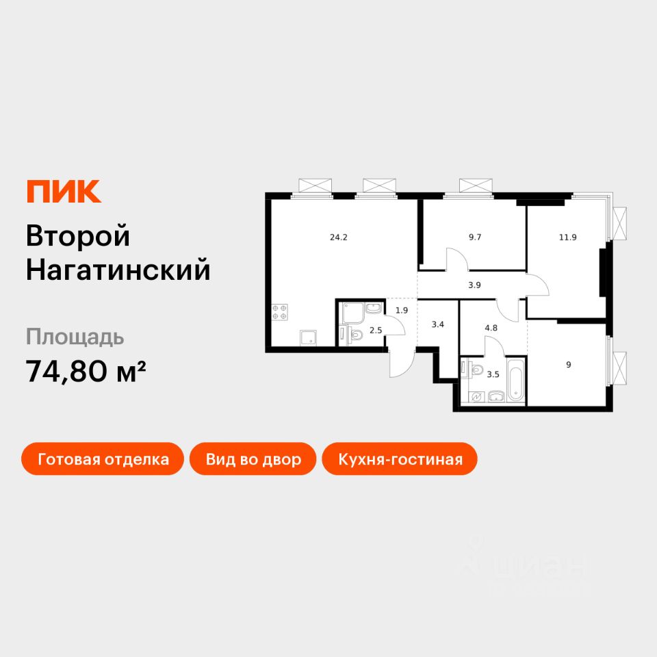 Продаётся 3-комн. квартира площадью 74,8 кв.м на 29 этаже 33 этажного дома (Корпус 1.1, Секция 1) проекта ПИК Второй Нагатинский. Светлый просторный подъезд на уровне земли, функциональная планировка, большие окна, c отделкой.