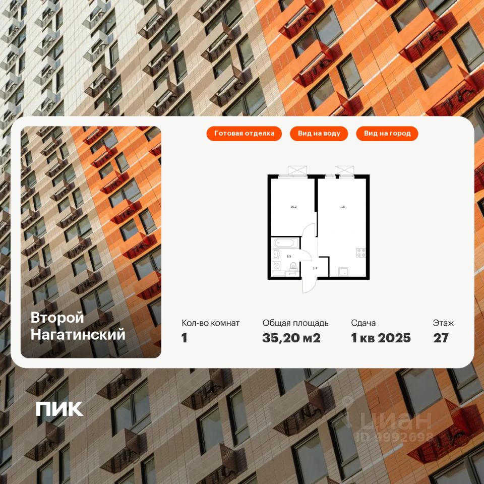 Продаётся 1-комн. квартира площадью 35,2 кв.м на 27 этаже 33 этажного дома (Корпус 7, Секция 3) проекта ПИК Второй Нагатинский. Светлый просторный подъезд на уровне земли, функциональная планировка, большие окна, c отделкой.