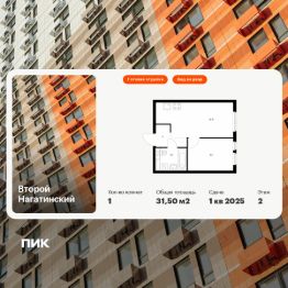 Продаётся 1-комн. квартира площадью 31,5 кв.м на 2 этаже 33 этажного дома (Корпус 7, Секция 3) проекта ПИК Второй Нагатинский. Светлый просторный подъезд на уровне земли, функциональная планировка, большие окна, c отделкой.