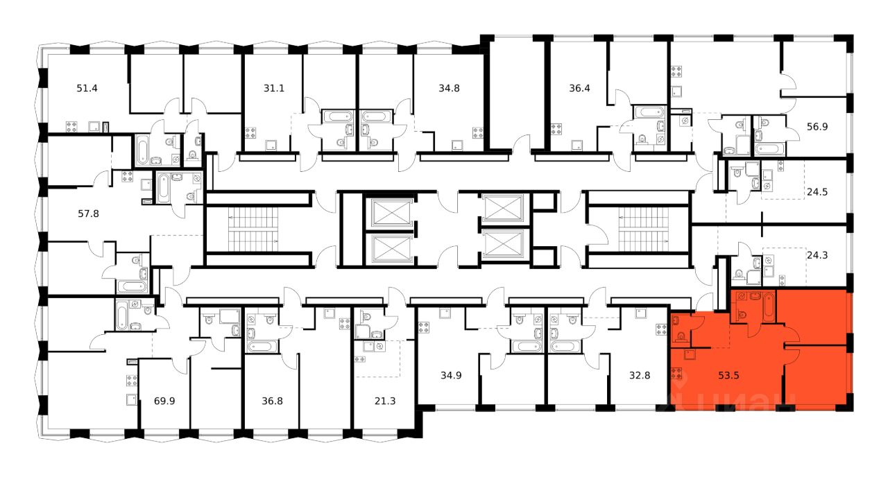 Продаётся 2-комн. квартира площадью 53,5 кв.м на 22 этаже 32 этажного дома (Корпус 2.3, Секция 1) проекта ПИК Бусиновский парк. Светлый просторный подъезд на уровне земли, функциональная планировка, большие окна, c отделкой.
