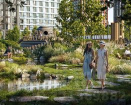 Взрослые смогут отдохнуть в дождевом саду — это удивительное место, где после дождя появляются маленькие живописные озерца. Для спорта — уличные тренажёры, площадки для командных игр, столы для пинг-понга и шахмат. Владельцы собак оценят место для прогулок с питомцем.