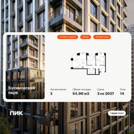 Продаётся 2-комн. квартира площадью 54,9 кв.м на 14 этаже 32 этажного дома (Корпус 2.3, Секция 1) проекта ПИК Бусиновский парк. Светлый просторный подъезд на уровне земли, функциональная планировка, большие окна, c отделкой.