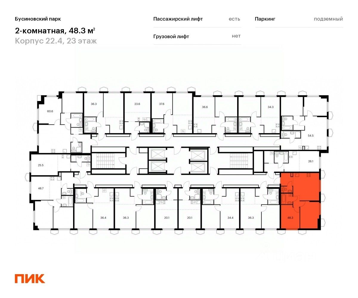 Продаётся 2-комн. квартира площадью 48,3 кв.м на 23 этаже 24 этажного дома (Корпус 22.4, Секция 4) проекта ПИК Бусиновский парк. Светлый просторный подъезд на уровне земли, функциональная планировка, большие окна, c отделкой.