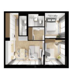 В корпусе 1.4 появится общественная терраса на 30-м этаже. Доступ сюда есть только у жителей, поэтому вы не встретите в этом пространстве посторонних людей. Здесь можно заниматься спортом, отдохнуть за чтением книги или создать собственный сад. А ещё отсюда открываются красивые виды на город.