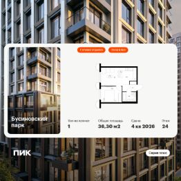 Продаётся 1-комн. квартира площадью 36,3 кв.м на 24 этаже 24 этажного дома (Корпус 22.4, Секция 4) проекта ПИК Бусиновский парк. Светлый просторный подъезд на уровне земли, функциональная планировка, большие окна, c отделкой.