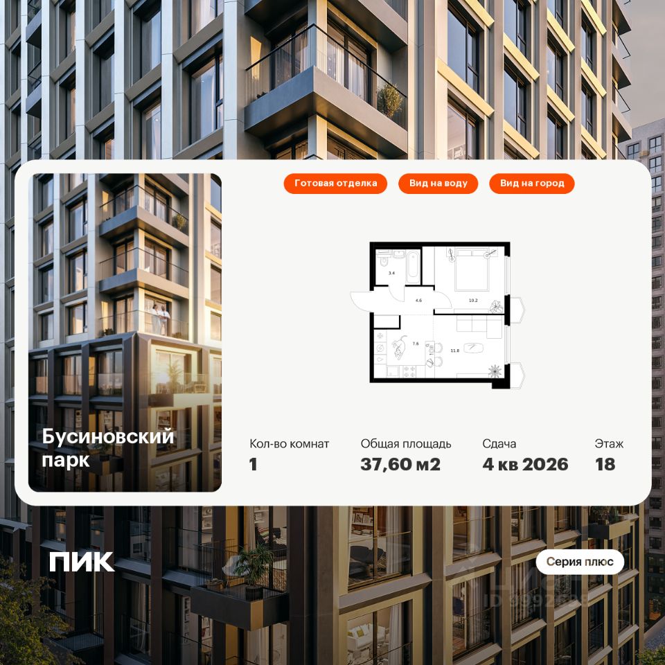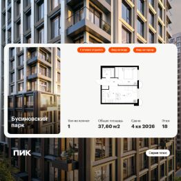 Продаётся 1-комн. квартира площадью 37,6 кв.м на 18 этаже 24 этажного дома (Корпус 22.4, Секция 4) проекта ПИК Бусиновский парк. Светлый просторный подъезд на уровне земли, функциональная планировка, большие окна, c отделкой.