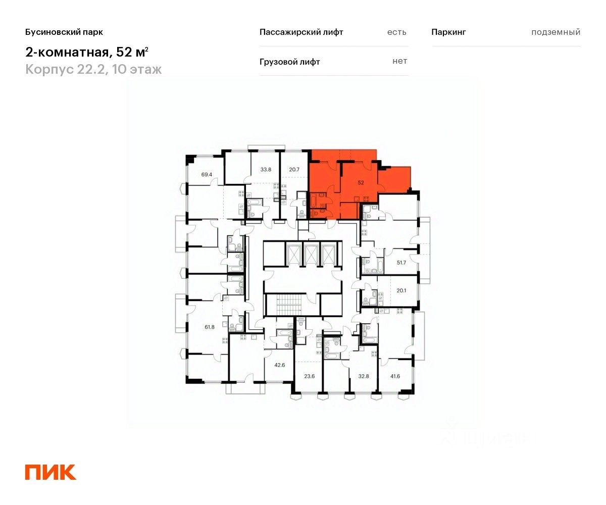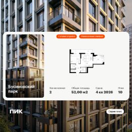 Продаётся 2-комн. квартира площадью 52 кв.м на 10 этаже 24 этажного дома (Корпус 22.2, Секция 2) проекта ПИК Бусиновский парк. Светлый просторный подъезд на уровне земли, функциональная планировка, большие окна, c отделкой.