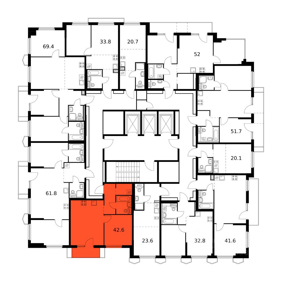 В корпусе 1.4 появится общественная терраса на 30-м этаже. Доступ сюда есть только у жителей, поэтому вы не встретите в этом пространстве посторонних людей. Здесь можно заниматься спортом, отдохнуть за чтением книги или создать собственный сад. А ещё отсюда открываются красивые виды на город.