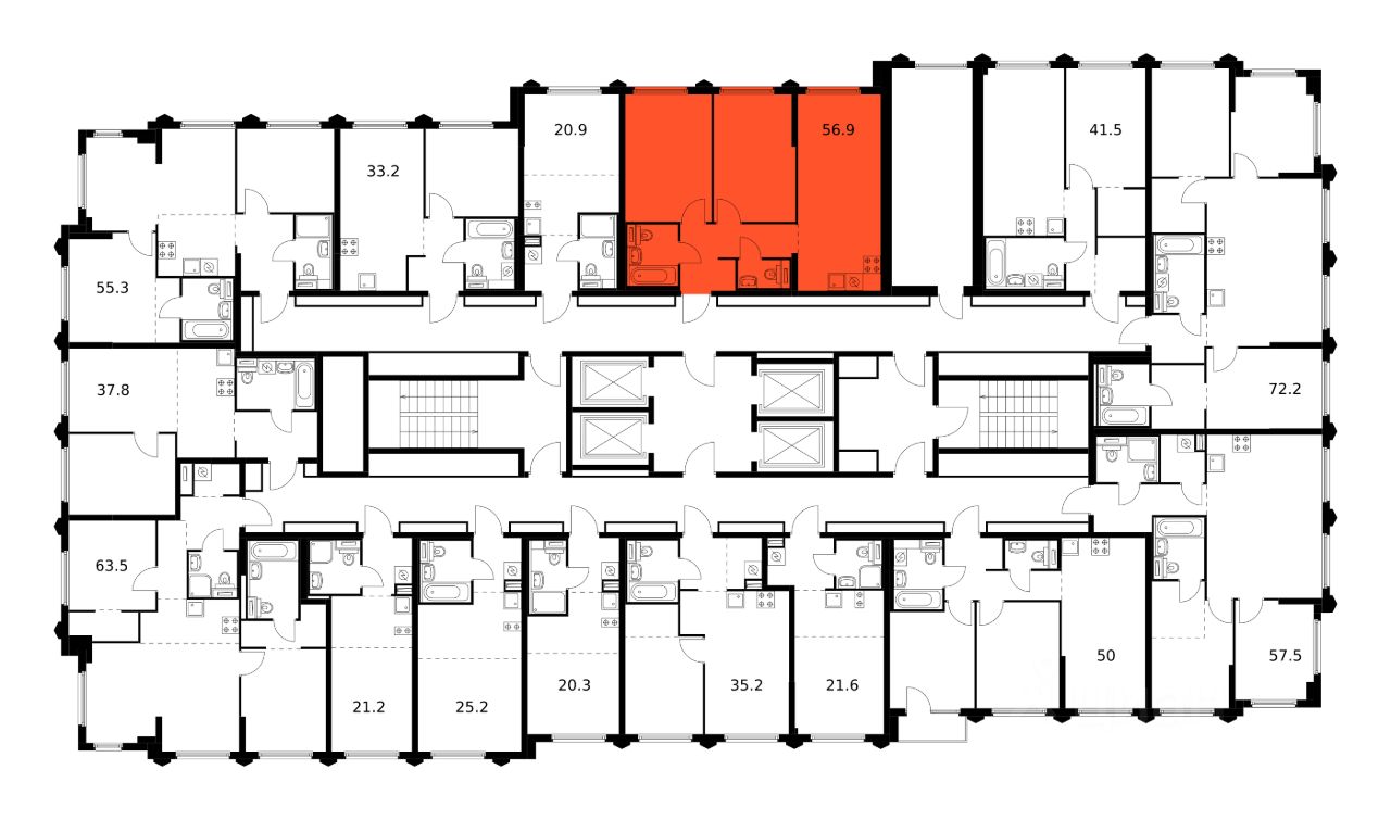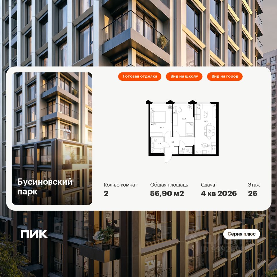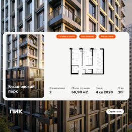Продаётся 2-комн. квартира площадью 56,9 кв.м на 26 этаже 32 этажного дома (Корпус 22.1, Секция 1) проекта ПИК Бусиновский парк. Светлый просторный подъезд на уровне земли, функциональная планировка, большие окна, c отделкой.