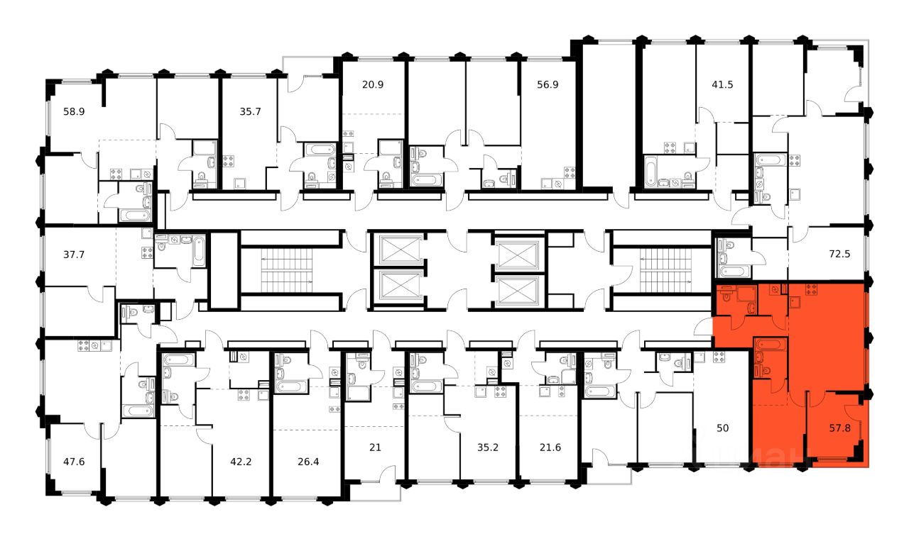 Продаётся 2-комн. квартира площадью 57,8 кв.м на 21 этаже 32 этажного дома (Корпус 22.1, Секция 1) проекта ПИК Бусиновский парк. Светлый просторный подъезд на уровне земли, функциональная планировка, большие окна, c отделкой.