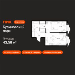 Продаётся 1-комн. квартира площадью 43,58 кв.м на 20 этаже 20 этажного дома (Корпус 1.3, Секция 1) проекта ПИК Бусиновский парк. Светлый просторный подъезд на уровне земли, функциональная планировка, большие окна, c отделкой.
