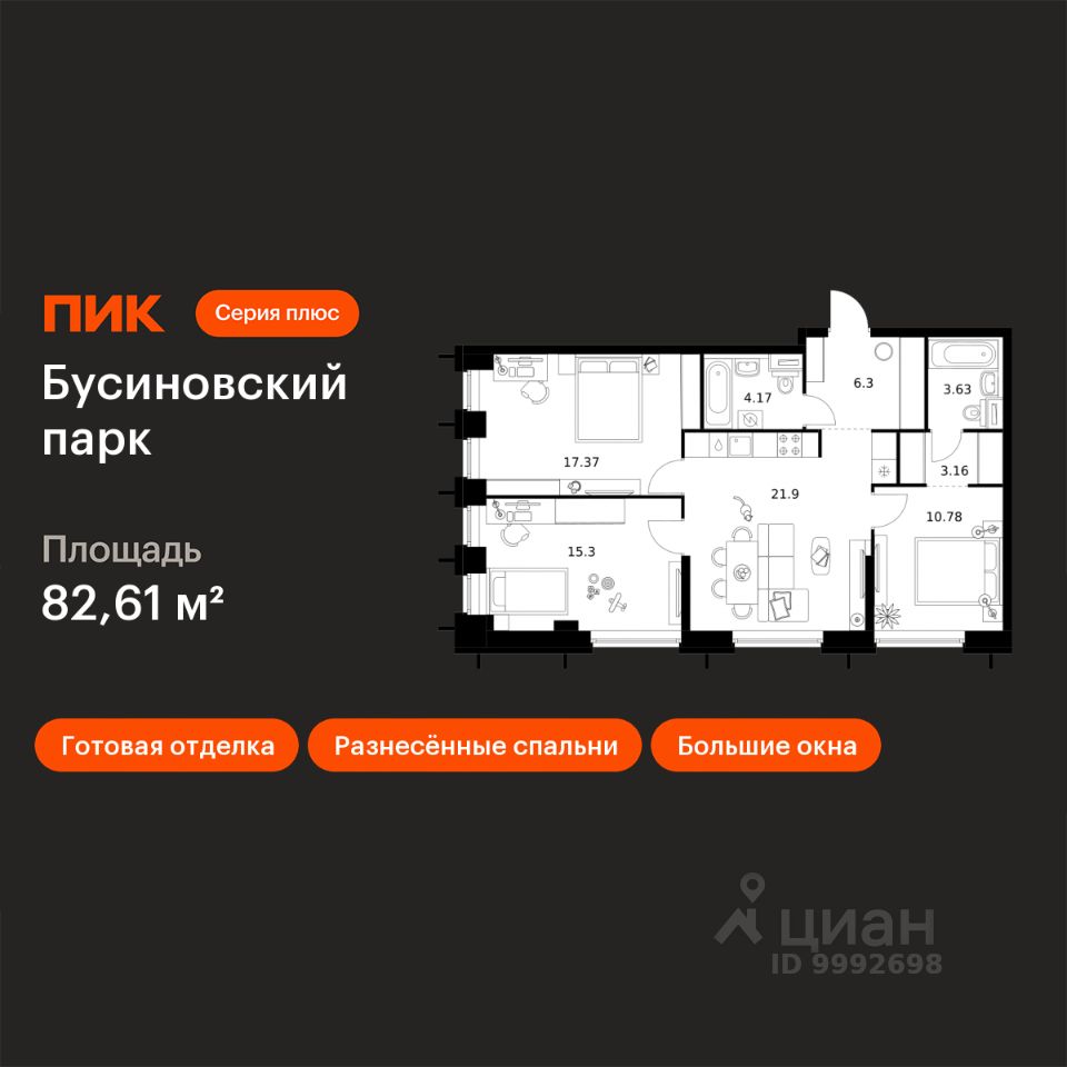 Продаётся 3-комн. квартира площадью 82,61 кв.м на 28 этаже 32 этажного дома (Корпус 1.4, Секция 2) проекта ПИК Бусиновский парк. Светлый просторный подъезд на уровне земли, функциональная планировка, большие окна, c отделкой.