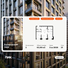 Продаётся 2-комн. квартира площадью 63,8 кв.м на 21 этаже 32 этажного дома (Корпус 1.4, Секция 2) проекта ПИК Бусиновский парк. Светлый просторный подъезд на уровне земли, функциональная планировка, большие окна, c отделкой.