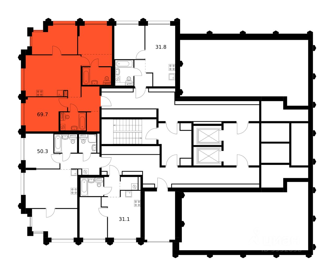 Продаётся 3-комн. квартира площадью 69,7 кв.м на 32 этаже 32 этажного дома (Корпус 22.3, Секция 3) проекта ПИК Бусиновский парк. Светлый просторный подъезд на уровне земли, функциональная планировка, большие окна, c отделкой.