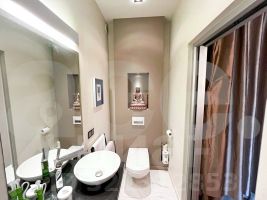Квартира с великолепными видовыми характеристиками и качественной дизайнерской отделкой в ЖК Воробьевы горы. Квартира не сдавалась в аренду, использовалась исключительно для личного проживания. Отделка выполнена с использованием дорогостоящих материалов, на полу уложена паркетная доска из кедра, в санузлах мраморная плита. Функциональная планировка: холл, просторная кухня-гостиная, спальня, кабинет, 2 санузла, гардеробная, системы хранения. В текущей планировке третья комната выделена в обособленную зонированием, при необходимости можно возвести стенку, либо поставить легковозводимую перегородку и сделать ее изолированной. Квартира укомплектована элитной бытовой техникой Gaggenau, телевизионным оборудованием Loewe и Bang&Olufsen, предметами интерьера ведущих производителей. Кондиционирование, вентиляция, теплый пол.