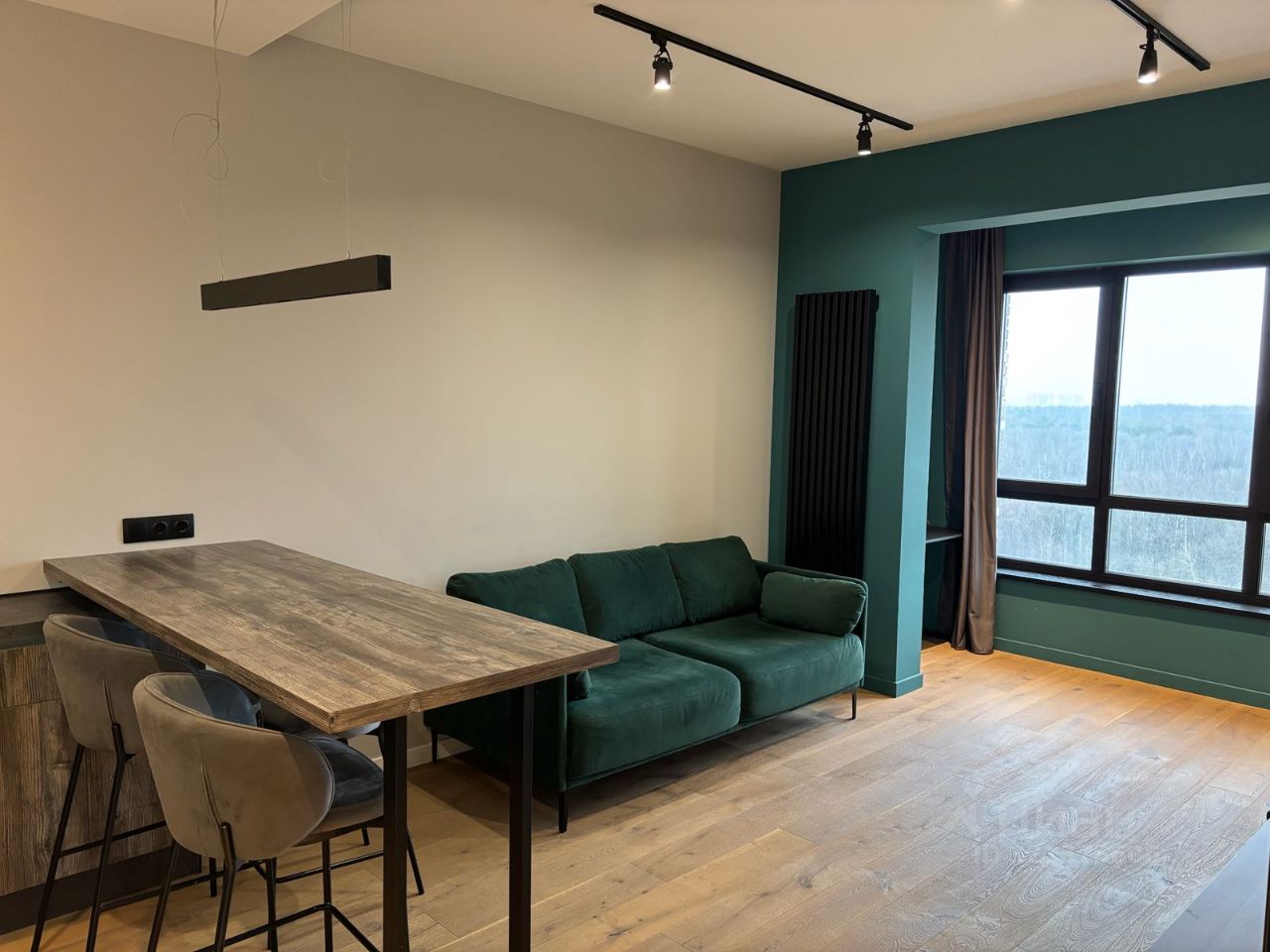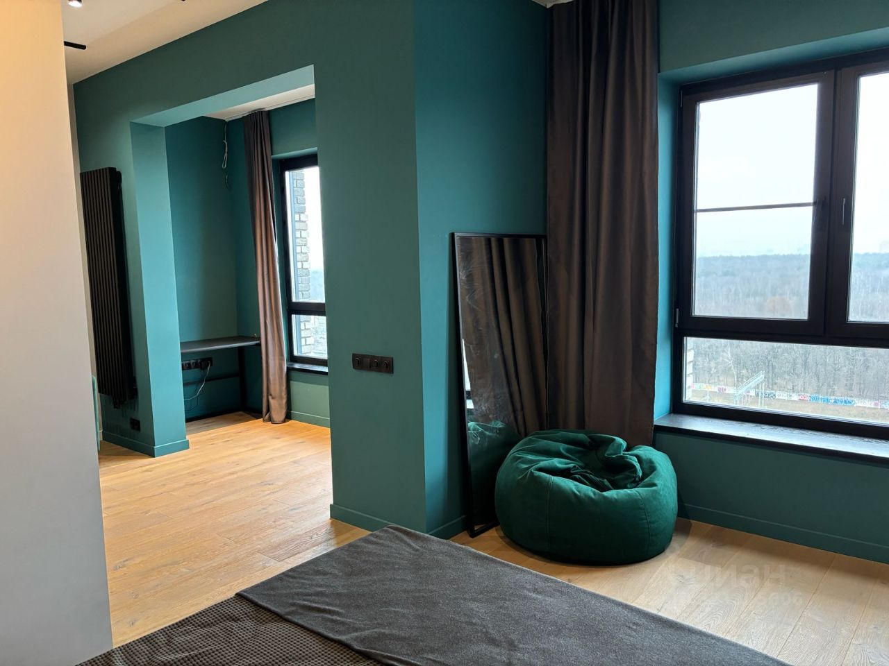 Высота потолков в квартире — 3 метра, увеличенные окна с великолепным видом на Тимирязевский парк — ощущение простора и света каждый день. И возможность наслаждаться свежим воздухом парка, просто открыв окно.
