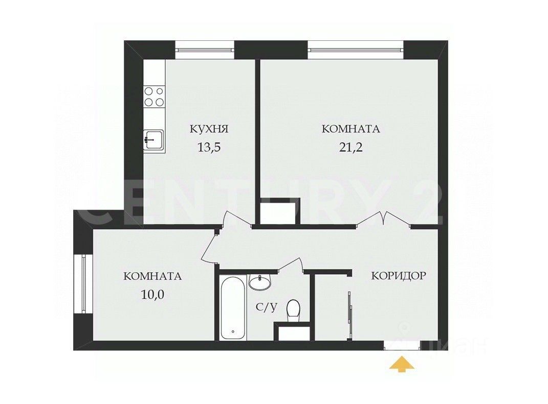 Квартира с удобной планировкой: ДВЕ ИЗОЛИРОВАННЫЕ комнаты: две спальни (21.2 м.кв, 11.0 м.кв)