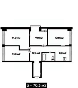 • Планировка: 3 изолированные комнаты (13 м², 14 м², 9 м²), кухня 8 м² (есть возможность перепланировки в 4 комнаты), совмещенный санузел.