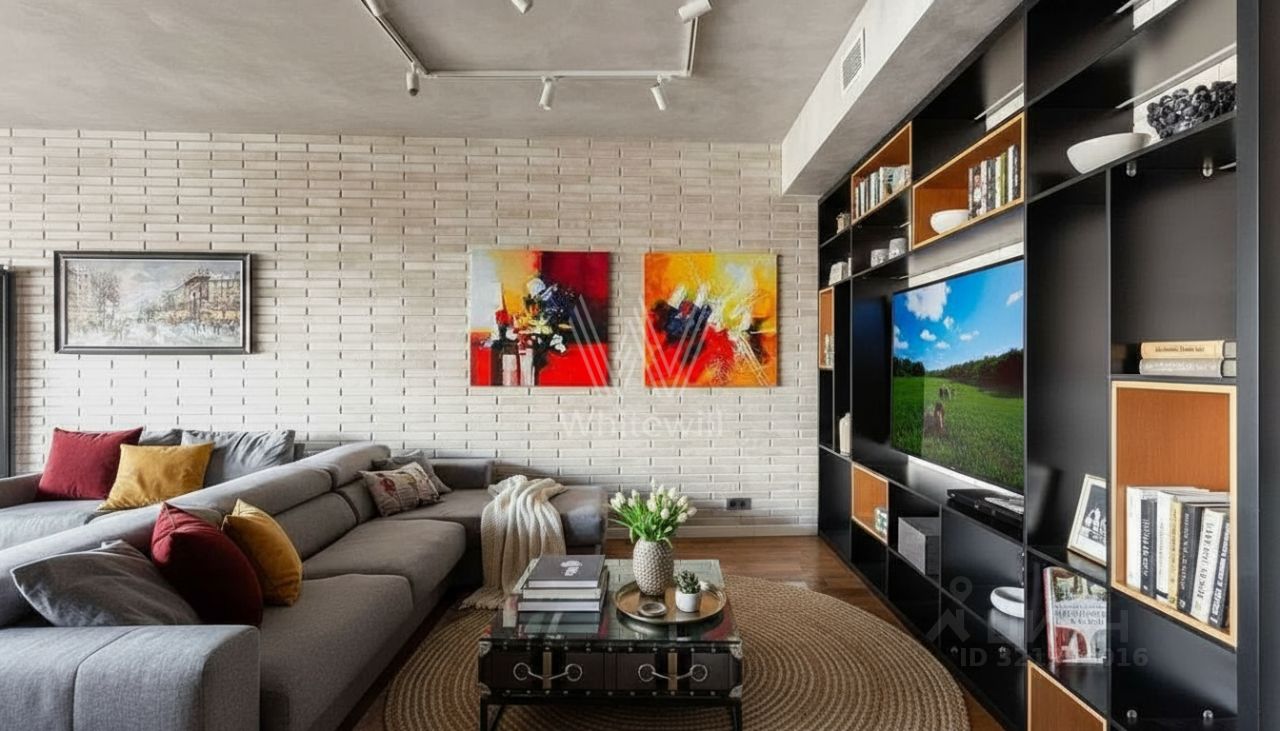 Просторная квартира с двумя спальнями в комплексе бизнес-класса "Розмарин". Квартира с высокими потолками 3,1 метра, площадью 116 м² расположена на 22-м этаже. Выполнена дизайнерская отделка в стиле Loft, основной акцент в оформлении создает декоративная кирпичная кладка. Установлена система центрального кондиционирования и приточно-вытяжная вентиляция. Продуманы различные сценарии освещения — люстры, настенные светильники и споты.