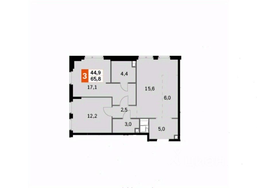 Общая площадь: 65.8 м²