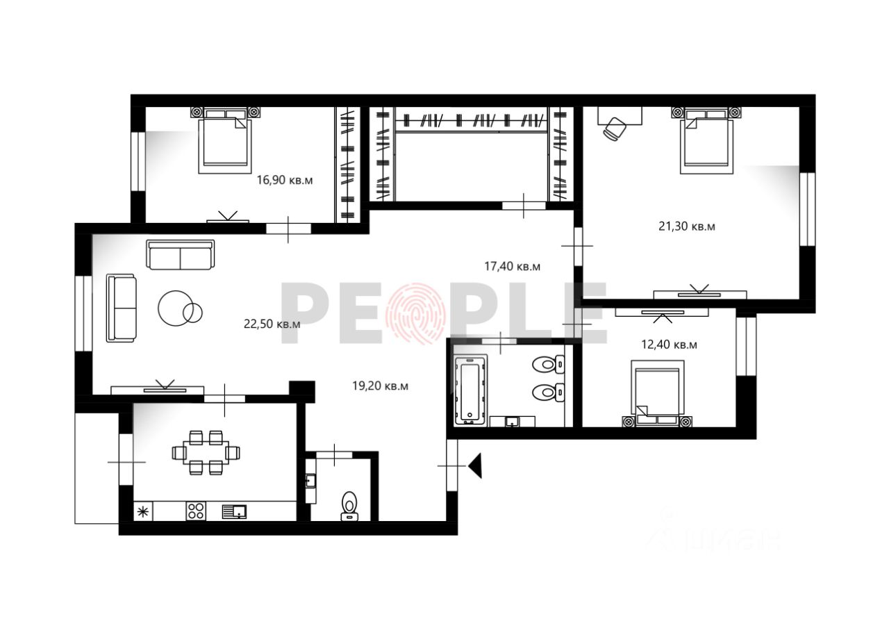Предлагается комфортабельная квартира 137 кв.м. для большой семьи в ЖК "Приват Сквер".