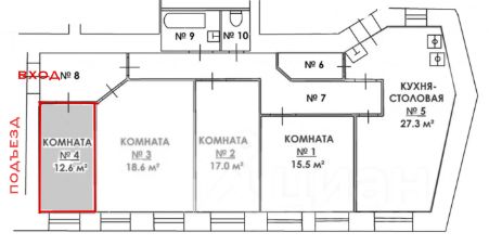 Продаётся изолированная комната 12.6 метров в 4-х комнатной квартире в 5 минутах от Большого театра. Комната в собственности с отдельным кадастровым номером.