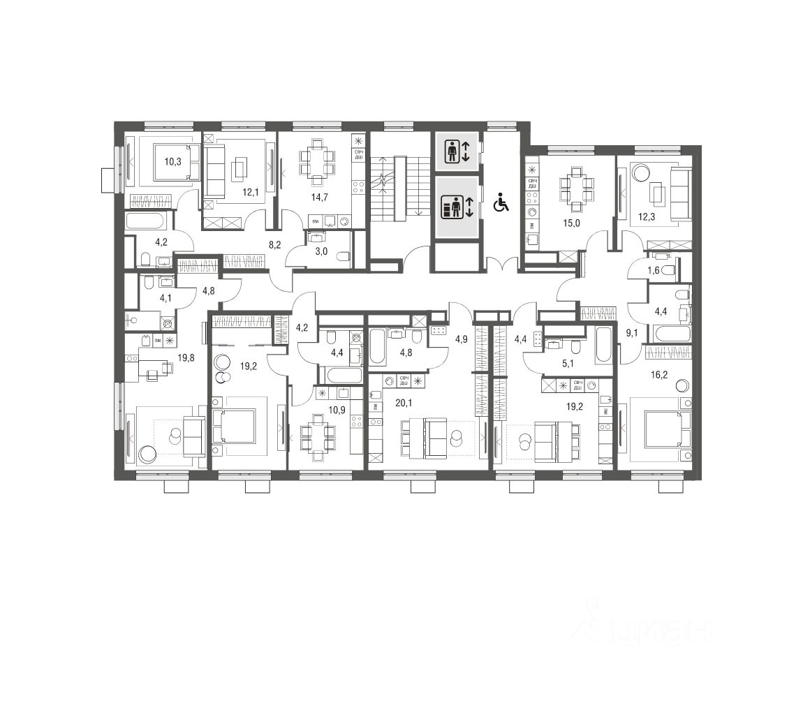 - с просторными кухнями-гостиными,