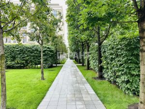 Особого внимания заслуживает уникальный внутренний парк площадью 2 гектара, разработанный известным ландшафтным архитектором Крисом Бердшоу. Парк представляет собой идеальное пространство для отдыха и занятий спортом среди природы.