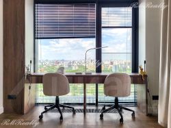 -Светлая просторная кухня-гостиная с камином, -Обеденная зона с видом на зеленый массив Ботанического сада,- Две просторные спальни с угловым панорамным остеклением,- Два санузла с ванной и душевой ( один при мастер спальне), - Большая гардеробная, - Постирочная.