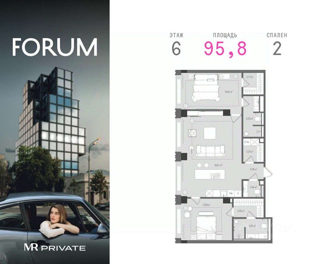 Продаётся 2-комнатная квартира от застройщика MR Private в клубном доме FORUM.