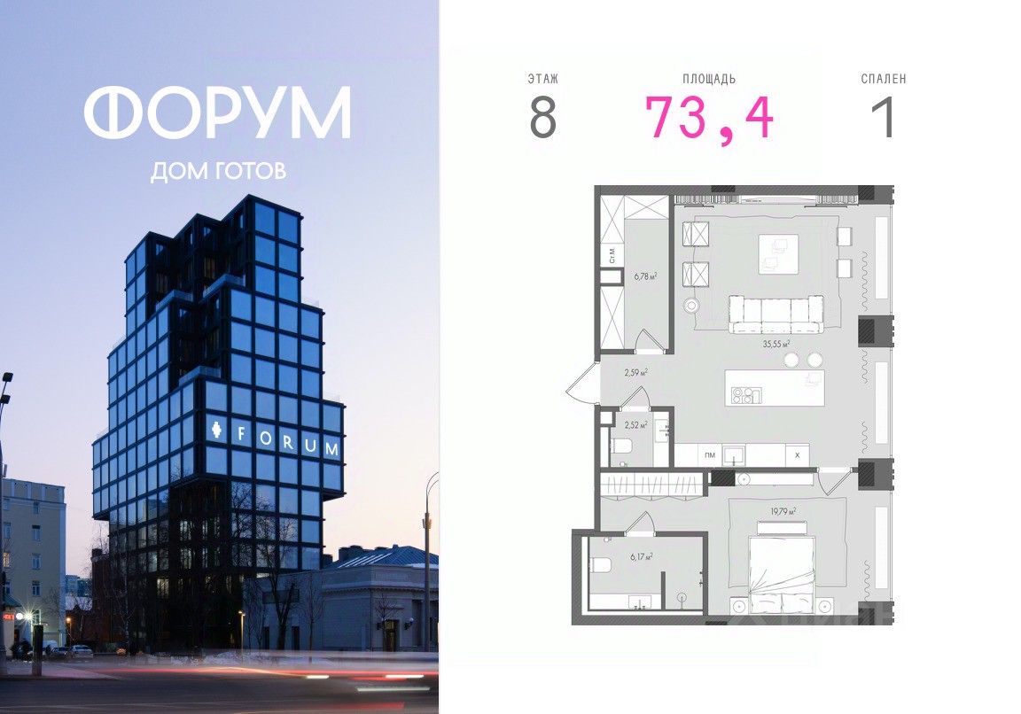 Продаётся 1-комнатная квартира общей площадью 73.40 м² в клубном доме Форум.