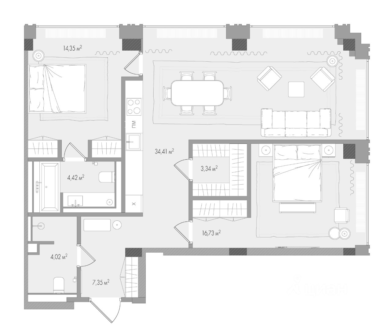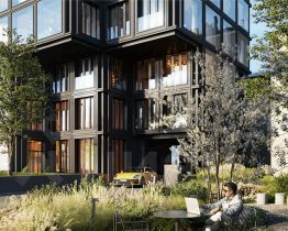 Всего 48 квартир, площадью до 160 м2 с потолками до 3,5 м, двухуровневые пентхаусы с каминами и террасами. Собственная инфраструктура: SPA-зона, тренажерный зал. Чистовая отделка в стиле mid-century с использованием премиальных материалов.