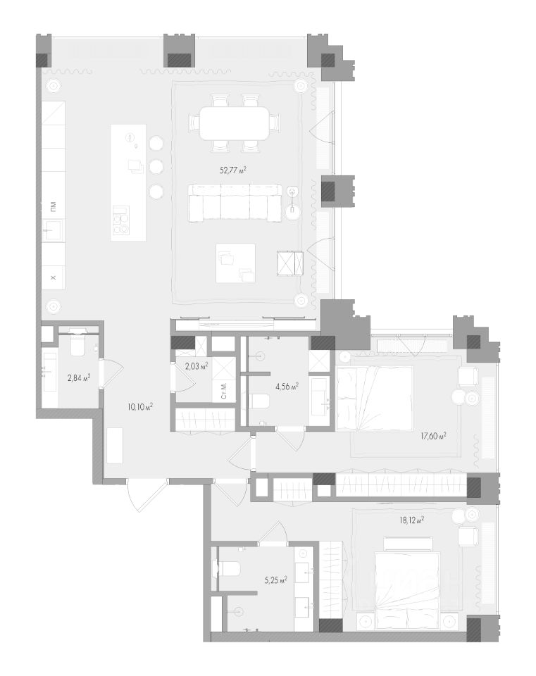 Общая площадь квартиры - 115.23 м².