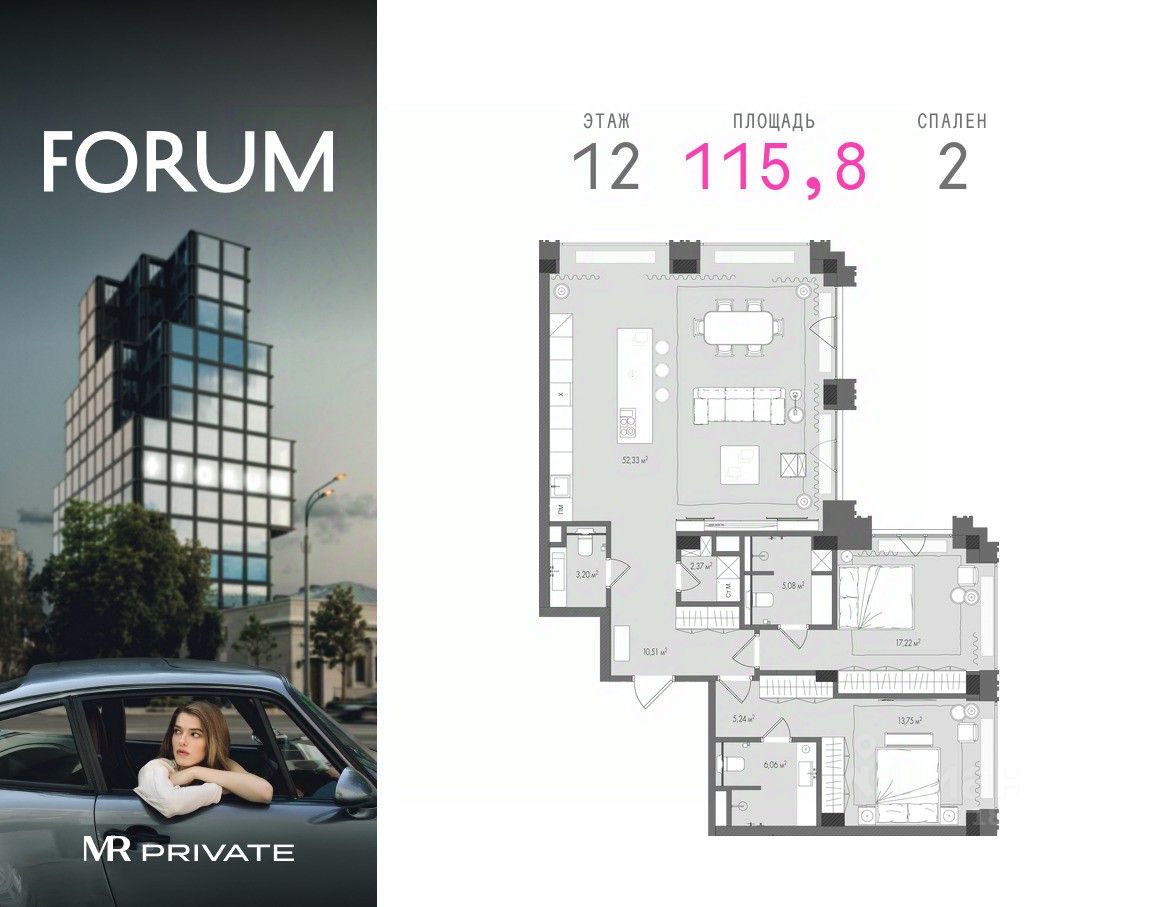 Продаётся 2-комнатная квартира от застройщика MR Private в клубном доме FORUM.