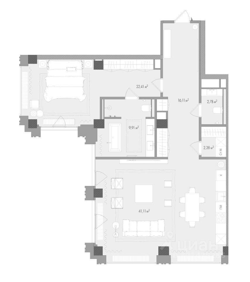 Всего 48 квартир, площадью до 160 м2 с потолками до 3,5 м, двухуровневые пентхаусы с каминами и террасами. Собственная инфраструктура: SPA-зона, тренажерный зал. Чистовая отделка в стиле mid-century с использованием премиальных материалов.