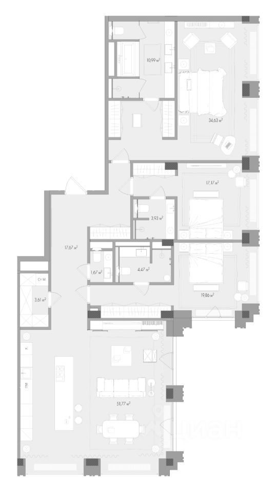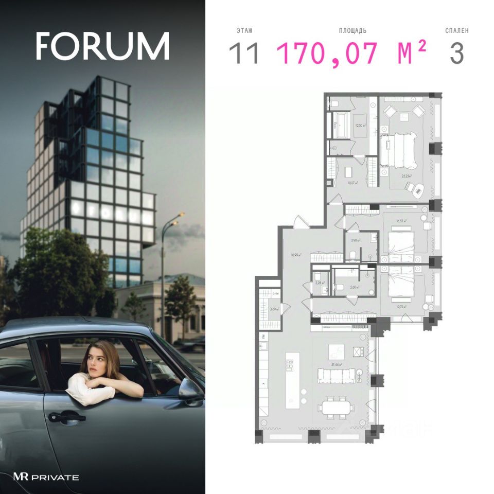 Продаётся 3-комнатная квартира от застройщика MR Private в клубном доме FORUM.