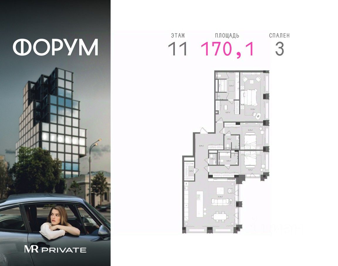 Продаётся 3-комнатная квартира общей площадью 170.07 м² в клубном доме Форум.