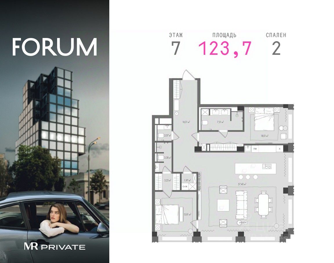 Продаётся 2-комнатная квартира от застройщика MR Private в клубном доме FORUM.