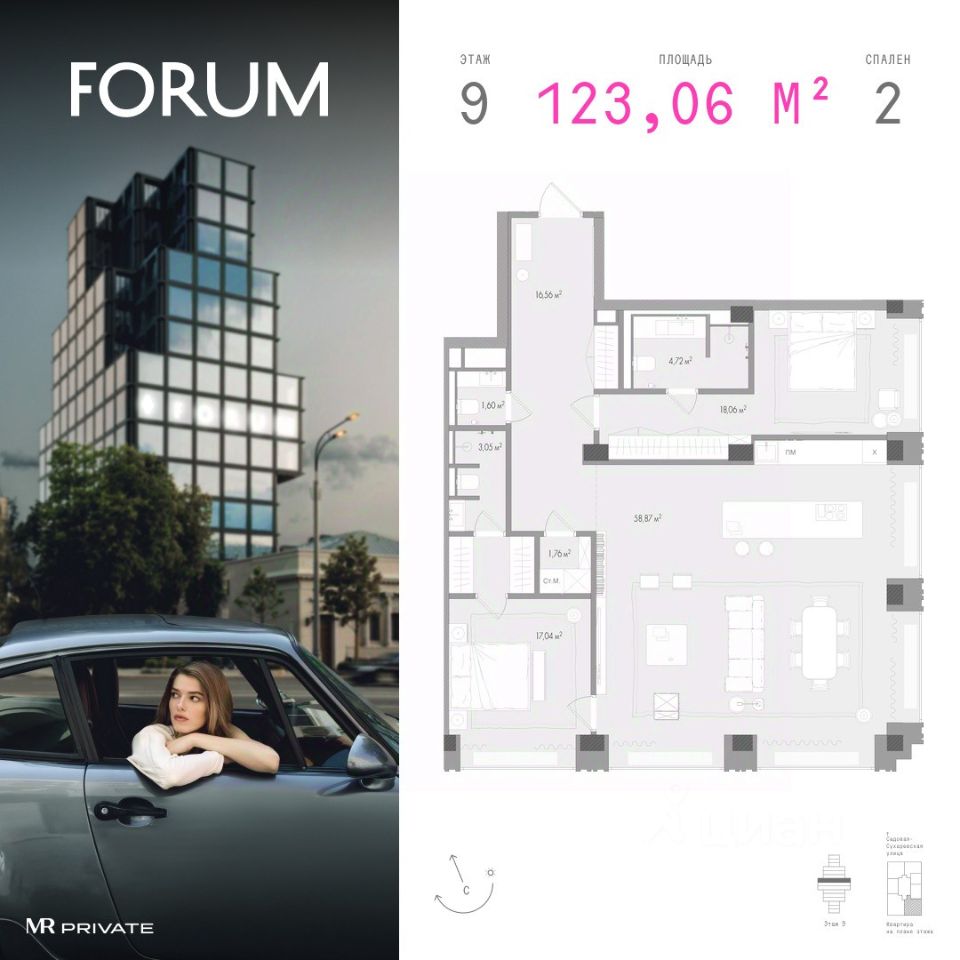 Клубный дом на Садовой-Сухаревской в историческом центре Москвы, в 400 метрах от Цветного бульвара.