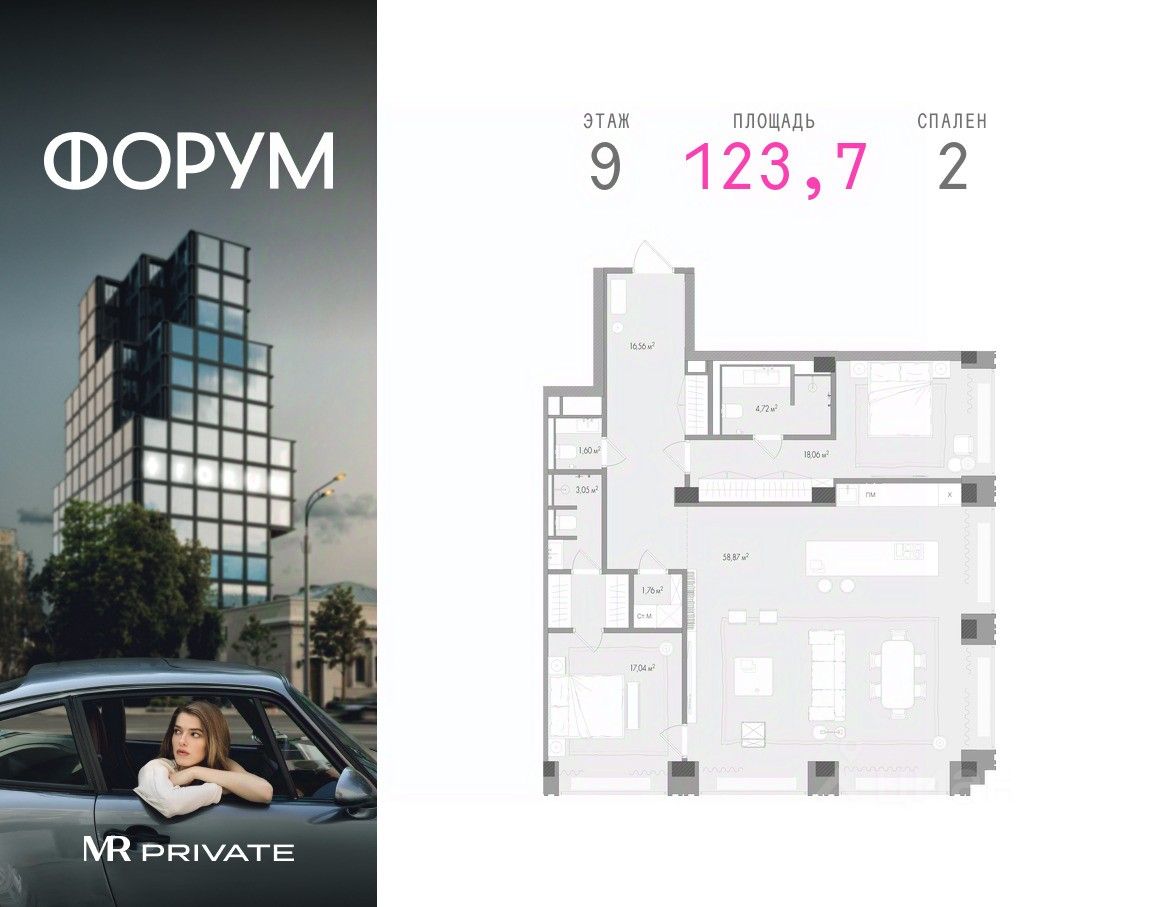 Продаётся 2-комнатная квартира общей площадью 123.65 м² в клубном доме Форум.
