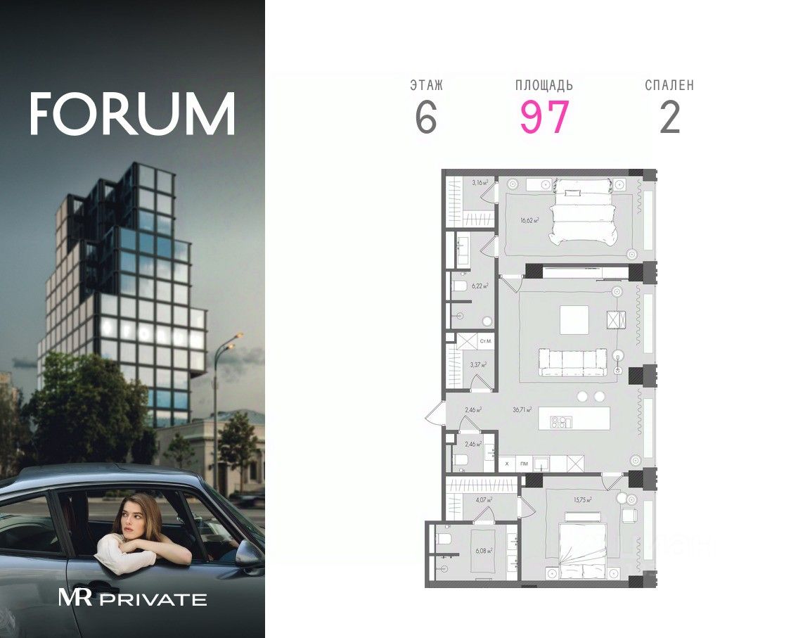 Продаётся 2-комнатная квартира от застройщика MR Private в клубном доме FORUM.